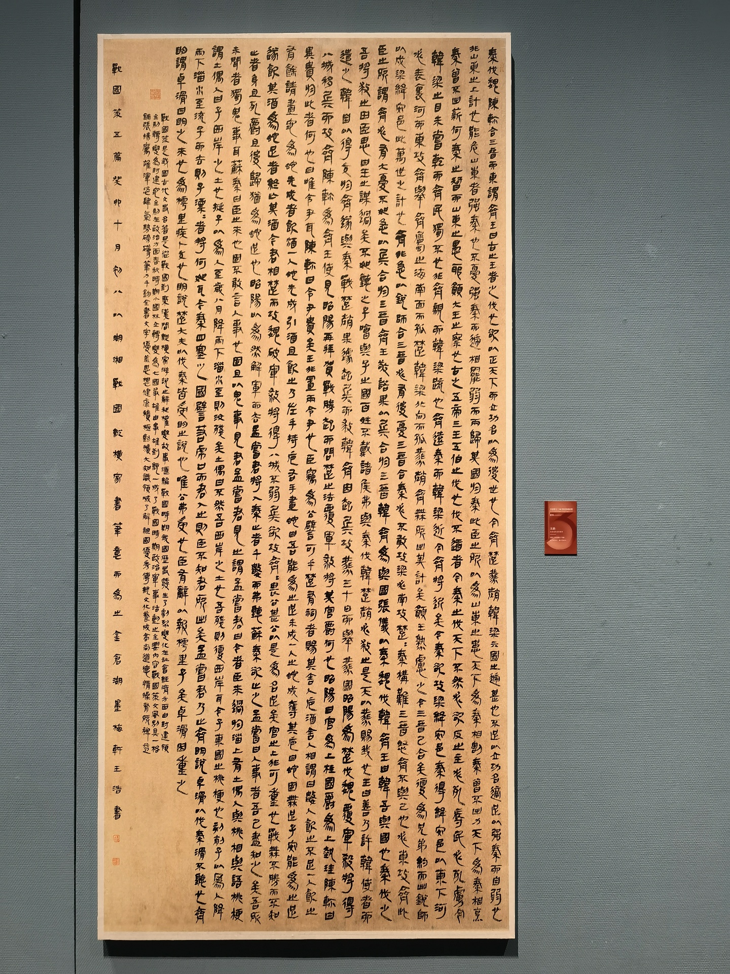 作品中字形大小不一、欹正相生,严格遵循马王堆帛书“字无定形”的特点,却又通过自身对书法结体的理解进行微调:将欧楷的中宫收紧理念融入部分字形,使帛书的疏朗不至于空泛;借鉴行书的欹侧之势,让静态的帛书文字产生动态张力,如“秦”“赵”“兵”等字,左倾右撑,尽显灵动。