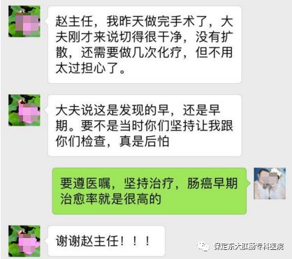 本月29日,保定东大肛肠医院的赵增涛主任收到了这样一条微信: