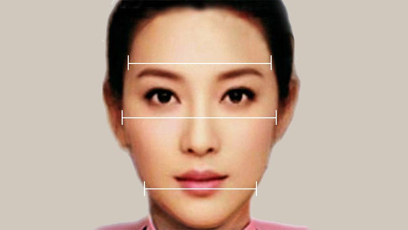 三个平面宽度有着各自的比例,越接近这个黄金比例,面部线条就越产生美感。这三个平面宽度是正面看脸的最重要参数。