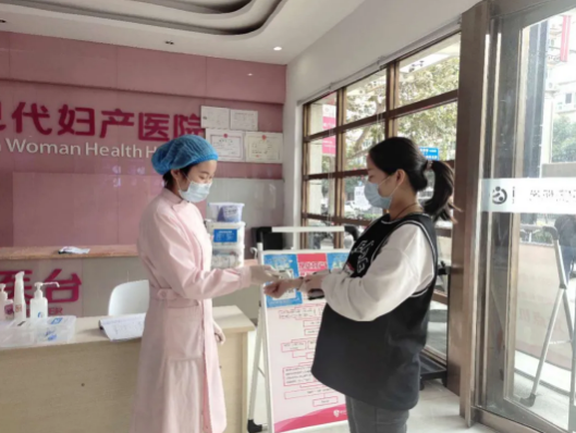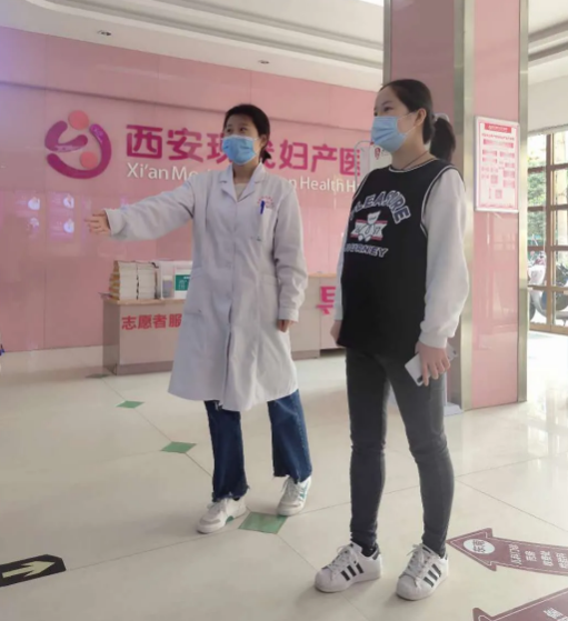 不用排队的四维体验 按照疫情防控措施,在现代妇产医院导医的带领下,扫码测体温。