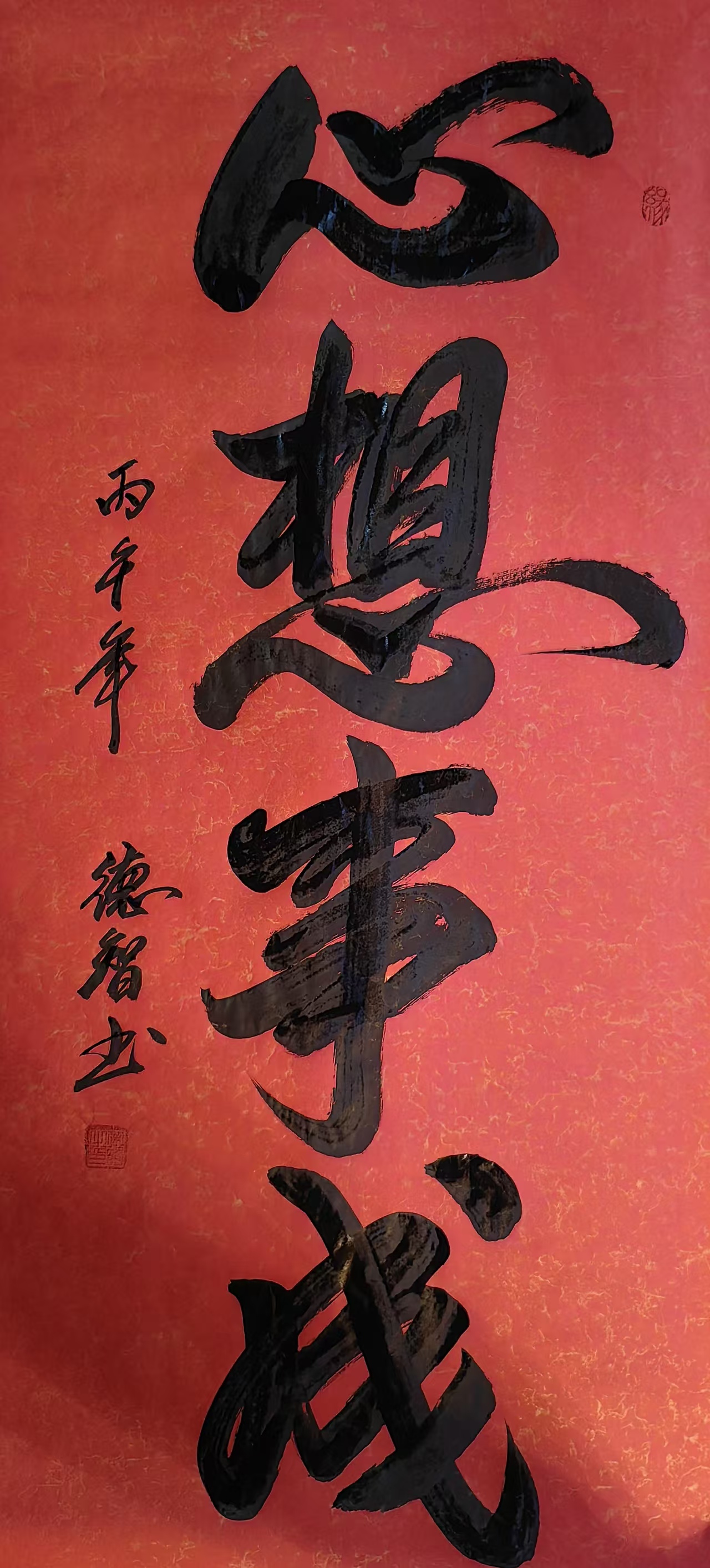 德智(名如常),从十多岁就喜欢写毛笔字,习武,研究国学风水,参访名家,钻研名家碑帖中吸取精华使自己的书法作品臻于完美境界,德智老师用墨肆意大胆, 恣意放达,毛笔在他的笔下任意驱使,融会贯通,撰写了大量的精品佳作,书以载道,法在度外,几十余载潜心研习书法,树立正确的人生观,通过发展创新,探索,突破,在价值演绎中传递一种文化能量,以书法为去载体,通过具象和抽象的意念表达,弘扬优秀中华传统文化。