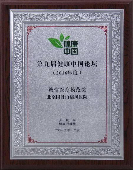 据了解,在于北京召开的第九届健康中国论坛上,北京国丹白癜风医院荣获第九届健康中国论坛“诚信医疗模范奖”。